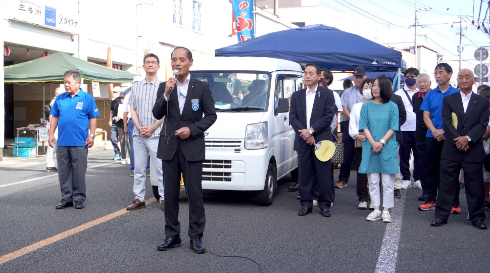 川南町長の挨拶の様子。この日は17周年の開催のため宮崎県知事も訪れていた。行政とも連携をとる