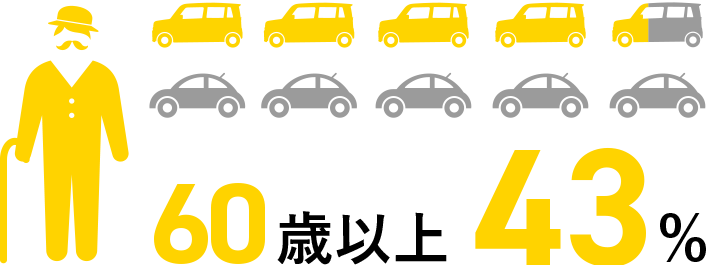 軽自動車ユーザーの43%を高齢者ユーザーが占め、軽自動車は高齢者から強く支持されています。